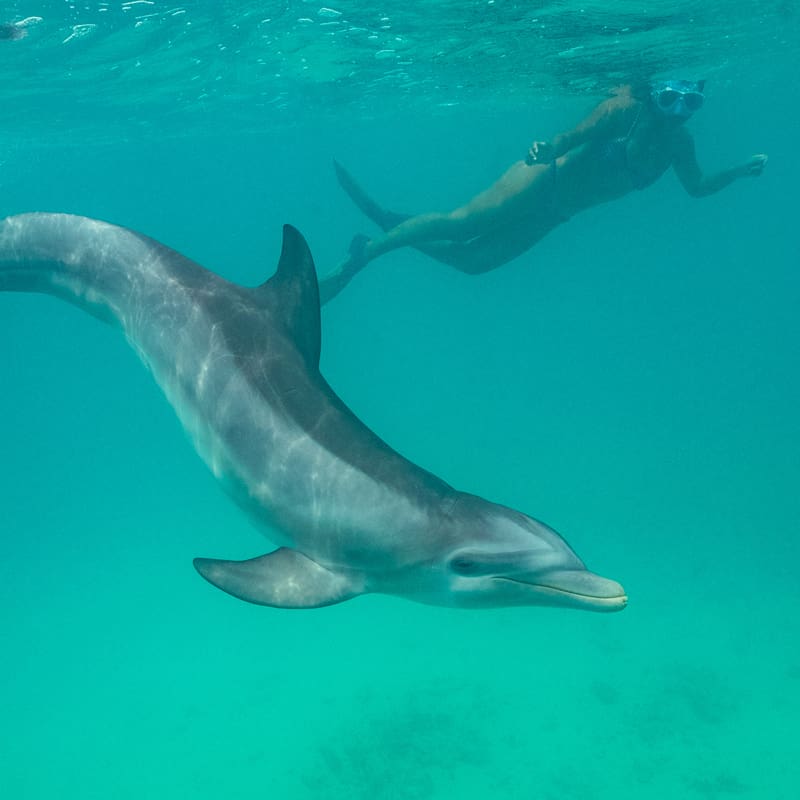 You’ll see a variety of tropical fish, as well as the possibility to see dolphins, nurse sharks, lemon sharks, reef sharks, spotted eagle rays, cownose stingrays, lobsters, conch and tropical corals.