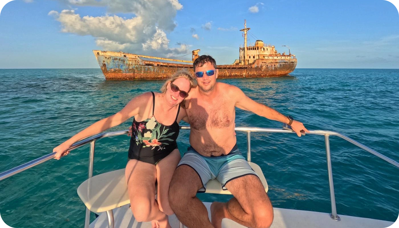 Next, explore the famous La Famille Express Shipwreck up close. Capture incredible photos and learn about its history from our expert crew as you cruise around this iconic site.